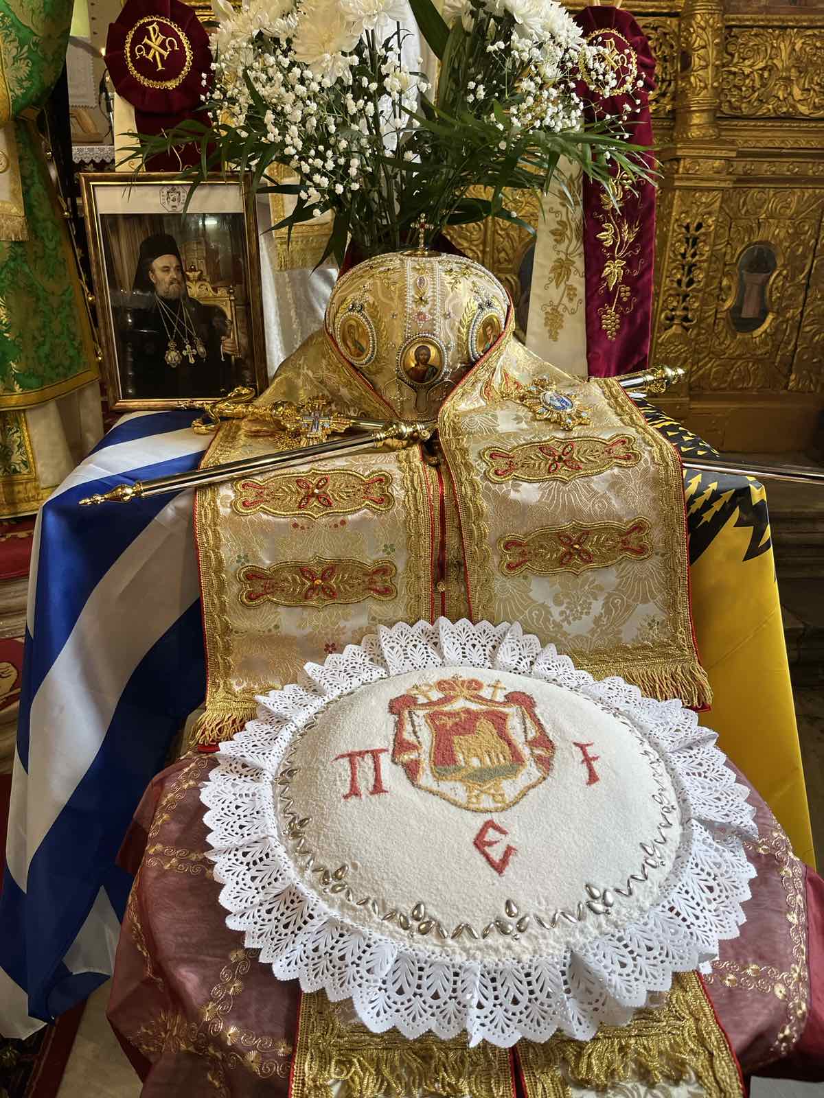 Συμπληρωθέντος, σύν Θεῷ, τοῦ χρόνου τῶν τεσσαράκοντα ἡμερῶν ἀπό τῆς πρός Κύριον ἐκδημίας τοῦ μακαριστοῦ Πατριάρχου πρ. Ἱεροσολύμων κυροῦ Εἰρηναίου, τῇ Κυριακῇ τῶν Ἀπόκρεω 19ῃ Φεβρουαρίου 2023 καί εἰς τόν Ἱερόν Ναόν Κοιμήσεως τῆς Θεοτόκου τῆς γενετείρας αὐτοῦ Χώρας Σάμου, ἐτελέσθη Ἀρχιερατική Θεία Λειτουργία, ἱερουργοῦντος τοῦ Σεβασμιωτάτου Ποιμενάρχου μας κ.κ. Εὐσεβίου, εἰς τό τέλος τῆς ὁποίας ἒλαβε χώραν τό τεσσαρακονθήμερον ἱερόν Μνημόσυνον ὑπέρ αἰωνίας μνήμης καί μακαρίας ἀναπαύσεως τῆς ψυχῆς τοῦ ἀειμνήστου Πατρός καί Πατριάρχου κυροῦ Εἰρηναίου.