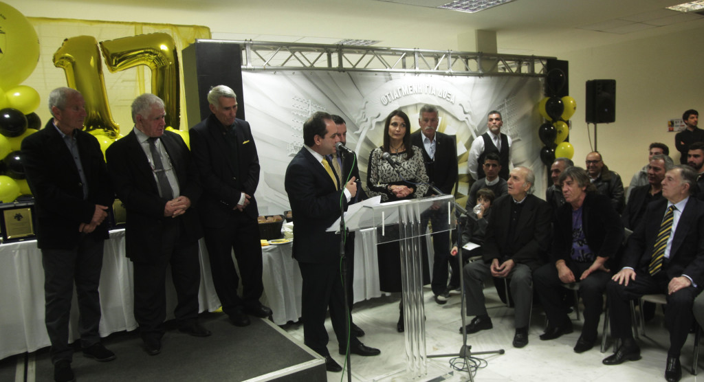 Οι Παλαίμαχοι Ποδοσφαιριστές της Ένωσης όπως ανέφερε ο Πρόεδρος τους Στέλιος Σεραφείδης αναγνωρίζουν την διαχρονική προσφορά της Εκκλησίας ιδιαίτερα , μάλιστα, σε μια πολύ δύσκολη περίοδο για την Ελλάδα. Ο Μητροπολίτης Νέας Ιωνίας και Φιλαδελφείας κ. Γαβριήλ παραλαμβάνοντας την τιμητική διάκριση από τον Πρόεδρο της ΠΑΕ ΑΕΚ κ. Ευάγγελο Ασλανίδη μίλησε με ιδιαίτερη συγκίνηση για τους πρόσφυγες της Μικράς Ασίας που με κόπο προσπάθησαν να ξαναχτίσουν μετά τη μικρασιατική καταστροφή τη ζωή τους, στην Αρχιερατική του περιφέρεια. Ο κ. Γαβριήλ είπε ότι το φιλανθρωπικό έργο στη Μητρόπολη του και σε ολόκληρη την Εκκλησία είναι κυρίως έργο των απλών Ελλήνων και ανέφερε ότι η ιστορία της ΑΕΚ είναι άρρηκτα δεμένη με τις αλησμόνητες πατρίδες και υπογράμμισε ότι δεν νοείται Νέα Φιλαδέλφεια χωρίς γήπεδο της ΑΕΚ. «Εύχομαι μέσα στο 2017, κατέληξε, να ξεκινήσουν τα έργα του γηπέδου και να επιστρέψει η ΑΕΚ στο σπίτι της».