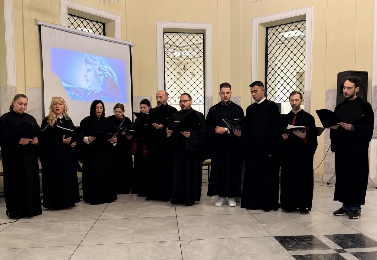 Το πρόγραμμα άνοιξε η βυζαντινή χορωδία του Ωδείου «ΜΕΛΩΔΟΙ της ΟΡΘΟΔΟΞΙΑΣ», όπου έψαλαν επίκαιρους ύμνους από την δεσποτική εορτή της Ορθοδοξίας.