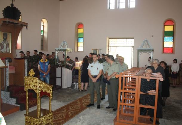 Τη Θεία Λειτουργία που τελέστηκε στον Ι. Ναό που θυμίζει το παραδοσιακό τραγούδι που μιλάει για το εκκλησάκι που «το σήμαντρο του δεν χτυπά, δεν έχει ψάλτη ούτε παπά» παρακολούθησαν και χριστιανοί που πήγαν εκεί από τα γειτονικά χωριά Μικρό Δέρειο, Κυριακή και Πρωτοκκλήσι αλλά και ο Προϊστάμενος της Διεύθυνσης Πολιτικών Υποθέσεων του Υπουργείου Εξωτερικών, Πρέσβυς κ. Ν. Πιπερίγκος, ο Διοικητής της 50ης Ταξιαρχίας, Ταξίαρχος κ. Θ. Τοπούζης και αρκετοί στρατιωτικοί.