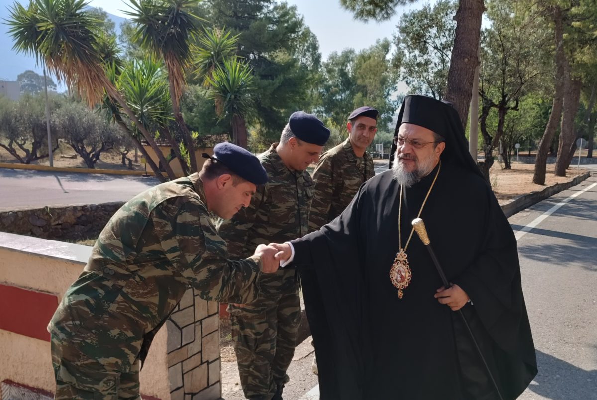 Ο Σεβασμιώτατος, έτυχε θερμής υποδοχής από τον Διοικητή του στρατοπέδου Συνταγματάρχη Δημήτριο Λυμπερέα, τον Διοικητή της 77 Μ.Ε. Καλαμάτας Πέτρο Κουλέτση, καθώς και από τα υπόλοιπα στελέχη της μονάδος.