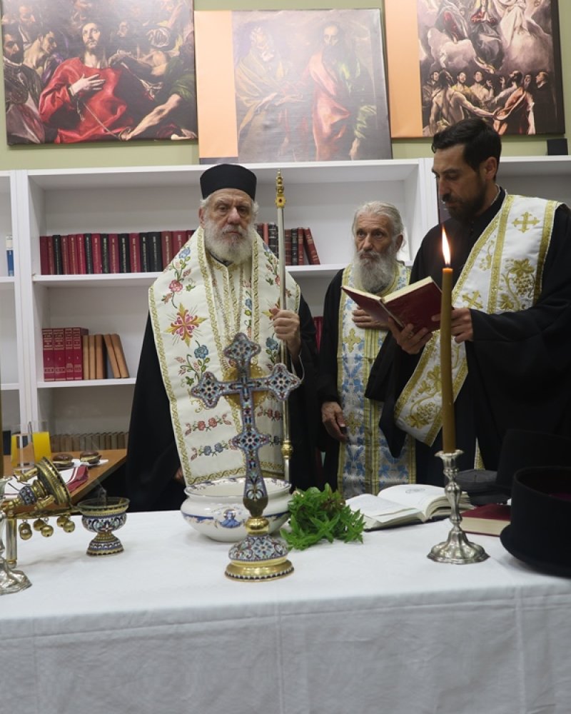 Επί τη ενάρξει, για τέταρτη χρονιά, των μαθημάτων της Σχολής Βυζαντινής και Παραδοσιακής Μουσικής της Ιεράς Μητροπόλεως «Νεόφυτος Βάμβας», η οποία στεγάζεται στην αίθουσα « Δομήνικος Θεοτοκόπουλος» του Ιερού Ναού Κοιμήσεως της Θεοτόκου, τελέσθηκε την Κυριακή, 21 Σεπτεμβρίου, Αγιασμός, από τον Σεβασμιώτατατο κ. Δωρόθεο Β΄ , με τη συμμετοχή του Εφημερίου του Ναού, Πρωτοπρ. Κωνστ. Κοντού και του Διακόνου Νέστορος Παγούνη, παρόντων και του Εφημερίου του Ιερού Ναού Αγίου Γεωργίου, Αρχιμ. Δωροθέου Γάγγου, του Διευθυντού της Σχολής και Πρωτοψάλτη του Ιερού Μητροπολιτικού Ναού της Μεταμορφώσεως κ. Βασιλ. Χασανδρινού, των Πρωτοψαλτών κ.κ. Λουκά Τσούκου και Κωνστ. Ψαρρού, των Διδασκόντων και των σπουδαστών της Σχολής.