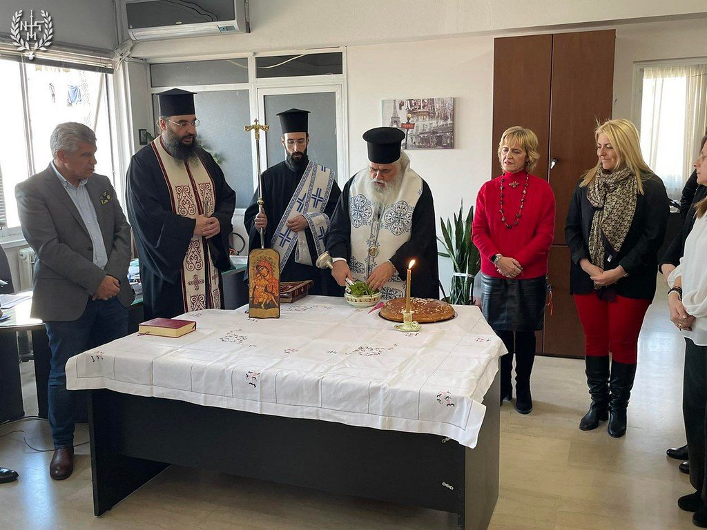 Την Παρασκευή 10 Φεβρουαρίου 2023 ο Σεβασμιώτατος Μητροπολίτης Νεαπόλεως και Σταυρουπόλεως κ. Βαρνάβας επισκέφθηκε τα γραφεία της Διεύθυνσης Δευτεροβάθμιας Εκπαίδευσης Ανατολικής Θεσσαλονίκης, για να τελέσει την Ακολουθία του Αγιασμού και να ευλογήσει την Αγιοβασιλόπιτα του νέου έτους.