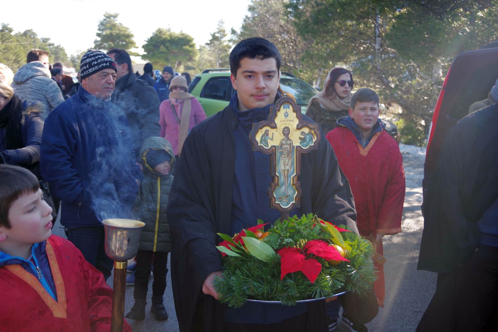 Η παρουσία του κόσμου, παρά το δριμύ ψύχος και τις πολύ χαμηλές θερμοκρασίες, ήταν και φέτος μεγάλη, καθώς χιλιάδες άτομα συγκεντρώθηκαν για να παρακολουθήσουν τον αγιασμό μέσα σ’ ένα κατάφυτο και γραφικό τοπίο.