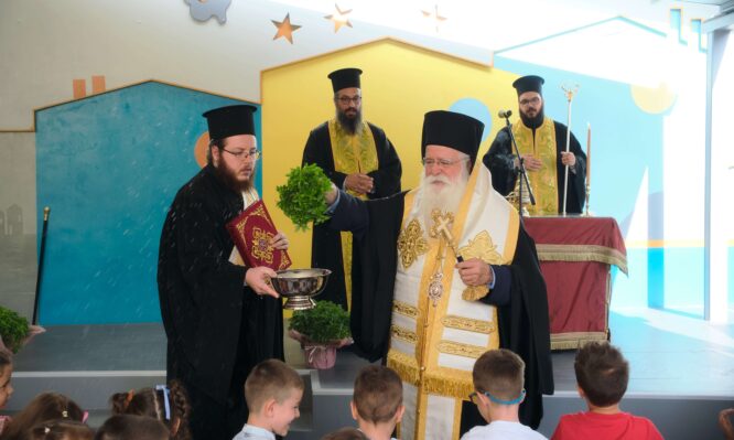 Στον σύντομο χαιρετισμό του ο Σεβασμιώτατος Ποιμενάρχης μας ευχαρίστησε το προσωπικό και το διευθυντή του Σταθμού για το πολύτιμο έργο που προσφέρουν καθημερινά αναφέροντας τη συνεχή προσπάθεια βελτίωσης των εγκαταστάσεων, ανακαινίζοντας σταδιακά όλους τους χώρους, ενώ ευχαρίστησε τους γονείς για την εμπιστοσύνη που δείχνουν στους Βρεφονηπιακούς Σταθμούς της Ιεράς Μητροπόλεως καλώντας τους να συνεχίσουν να συνεργάζονται με τους νηπιαγωγούς για το καλό των παιδιών τους. Παράλληλα, επισήμανε προς τους γονείς την ιδιαίτερη σημασία της προσχολικής αγωγής για την ολόπλευρη καλλιέργεια του παιδιού, καθώς και την αποστολή της τοπικής Εκκλησίας να στηρίζει την οικογένεια και να ενισχύει το παιδαγωγικό έργο που επιτελείται στους σταθμούς. Τέλος, τα παιδιά  τραγούδησαν στον Σεβασμιώτατο και στους γονείς τα αγαπημένα τους τραγούδια προσφέροντάς τους το πιο θερμό τους χαμόγελο.