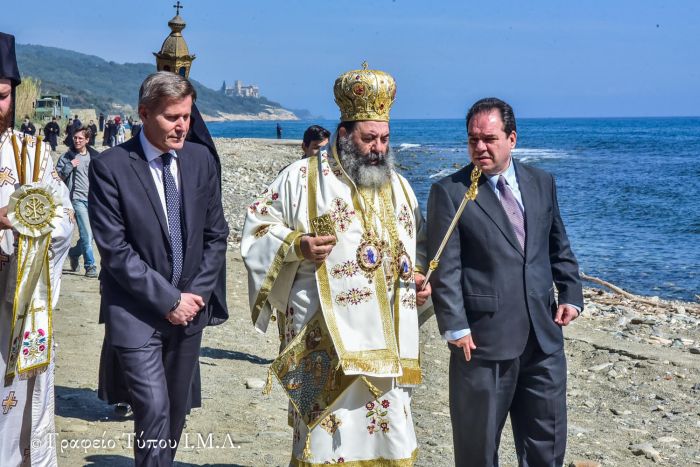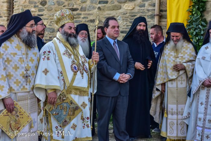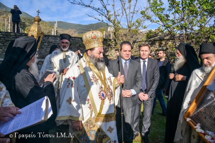 Κατά την διάρκεια της Θείας Λειτουργίας τον Σεβασμιώτατο πλαισίωναν ο Καθηγούμενος της Ιεράς Πατριαρχικής και Σταυροπηγιακής Μονής των Ιβήρων, Πανοσιολογιώτατος Αρχιμ. π. Ναθαναήλ, ο Προηγούμενος αυτής, Πανοσιολογιώτατος Αρχιμ. π. Βασίλειος Γοντικάκης, καθώς επίσης Ιερομόναχοι και Διάκονοι από Μονές της Αθωνικής Πολιτείας, ενώ παρέστησαν ο πολιτικός διοικητής του Αγίου Όρους κ. Κωνσταντίνος Δήμτσας και ο δήμαρχος Λαγκαδά κ. Ιωάννης Καραγιάννης.