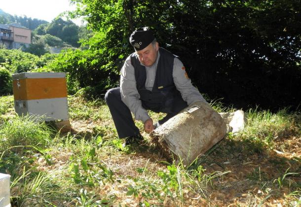 Στο Άγιο Όρος αρκετοί μοναχοί χρησιμοποιούν ακόμη το κοφίνι. Ο κ. Χρήστος, Σεϊμένης στις Καρυές, με βοήθησε στη φωτογράφιση κάποιων κοφινιών. (Το τσιγάρο χρησιμεύει για καπνιστήρι που απωθεί τις μέλισσες)