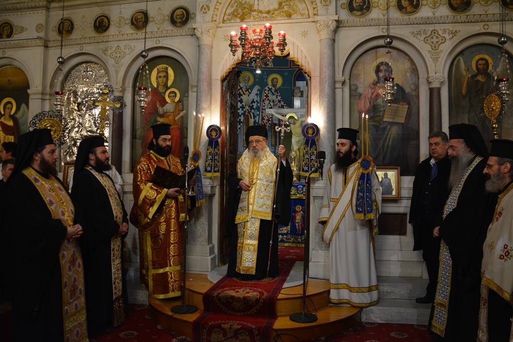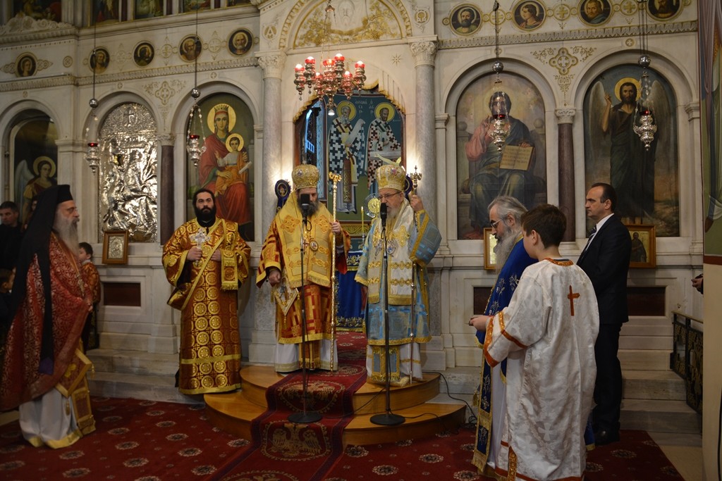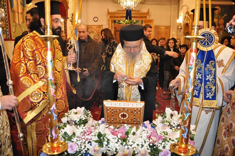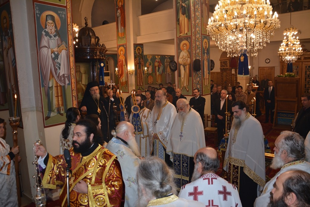 Το πρωί της Κυριακής, 14 Ιανουαρίου, στον Ιερό Ναό Αγίου Γεωργίου Αγρινίου και ενώπιον του ιερού λειψάνου, τελέσθηκε αρχιερατικό συλλείτουργο προεξάρχοντος του Μητροπολίτου Ιωαννίνων κ. Μαξίμου, συλλειτουργούντος του Ποιμενάρχου Μητροπολίτου Αιτωλίας και Ακαρνανίας κ. Κοσμά. Τον θείο λόγο κήρυξε ο Μητροπολίτης Ιωαννίνων, ο οποίος ανέλυσε θεολογικά το Αποστολικό Ανάγνωσμα της ημέρας, Κυριακής μετά τα Φώτα, αναφερόμενος στον Υιό και Λόγο του Θεού που ήρθε ως Φώς στον κόσμο για να φωτίσει και να αποκαταστήσει τον παραστρατημένο άνθρωπο. Ο Σεβασμιώτατος κ. Μάξιμος ανέφερε ότι όσο ο άνθρωπος ζούσε στον παράδεισο ήταν όλοφωτος, έχοντας διαρκή κοινωνία με τον Θεό. Μετά την πτώση διεκόπη η ροή της ακτίστου θείας χάριτος και ο άνθρωπος βρέθηκε στο σκοτάδι. Έτσι ο Υιός του Θεού ενηνθρώπησε και ήλθε ως Φώς στον κόσμο, κατέβηκε από τους ουρανούς για να ανεβάσει στους ουρανούς τον άνθρωπο και να αποκαταστήσει την ροή της ακτίστου ενεργείας της θείας χάριτος. Έγινε άνθρωπος για να φωτίσει και να δοξάσει την ανθρώπινη φύση και ταυτόχρονα να δώσει την ευκαιρία του φωτισμού και του δοξασμού σε κάθε άνθρωπο που θα θελήσει να Τον ακολουθήσει και να ενωθεί μαζί Του. Ολοκληρώνοντας το θείο κήρυγμα, ο Σεβασμιώτατος, επεσήμανε ότι όπως ακριβώς έκαναν και οι άγιοι της Εκκλησίας, όλοι οι χριστιανοί καλούμαστε «να γίνουμε ενεργά κύτταρα του Σώματος του Χριστού, της Εκκλησίας, για να φθάσουμε στην πληρότητα της θείας χάριτος. Να ομοιάσουμε με τον Θεό, ώστε να γίνουμε και εμείς αγάπη, ελευθερία, δικαιοσύνη, έλεος. Να γίνουμε κατά χάριν, κατά δωρεάν, όλα όσα είναι ο Θεός κατά φύσιν, κάνοντας έτσι δική μας αυτή τη θεϊκή ενέργεια που μπορεί να μας μεταμορφώσει και να μας κάνει χριστούς, να μας κάνει να γίνουμε και εμείς φώς για τον κόσμο, να φωτίζουμε τα σκοτάδια της κοινωνίας που δεν γνωρίζουν τον Ιησού Χριστό». Πριν την απόλυση της Θείας Λειτουργίας, ο Σεβασμιώτατος Ποιμενάρχης μας κ. Κοσμάς, ευχαρίστησε τον Μητροπολίτη Ιωαννίνων για την παραχώρηση του ιερού Λειψάνου. Ο Μητροπολίτης Ιωαννίνων κ. Μάξιμος ευχαρίστησε τον Ποιμενάρχη μας, τους άρχοντες της πόλεως, τους ιερείς και τον λαό για την υποδοχή και την φιλοξενία.
