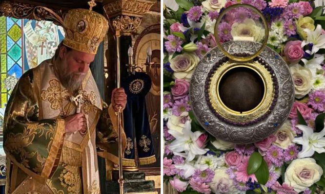 Η Αγρυπνία τελέσθηκε ενώπιον της Τιμίας Κάρας του Αγίου Γρηγορίου Νύσσης, η οποία φυλάσσεται, ως πολύτιμο θησαύρισμα στον Ιερό Ναό του Αγίου Ευσταθίου, και η οποία τέθηκε σε προσκύνηση προς ευλογία και αγιασμό του πιστού λαού.