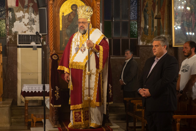 Τον Σεβασμιώτατο πλαισίωσαν ο Πανοσιολογιώτατος Αρχιμανδρίτης Αλέξιος Αρώνης, προϊστάμενος του Ιερού Ναού και οι πρεσβύτεροι Περικλής Τσίχλης, Σπυρίδων Αδαμόπουλος και Γεώργιος Ζαριφόπουλος.