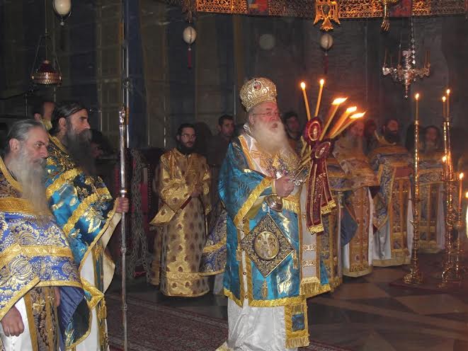 Με κάθε επισημότητα τελέστηκε η αγρυπνία για την εορτή των Θεοφανείων στον ιερό ναό του Πρωτάτου στις Καρυές του Αγίου Όρους, από τον μητροπολίτη Κιλκισίου κ. Εμμανουήλ.