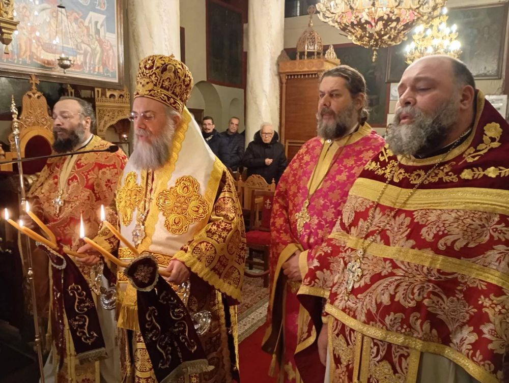 Στην Ιερά Αγρυπνία προεξήρχε ο Σεβασμιώτατος Μητροπολίτης Τρίκκης, Γαρδικίου και Πύλης κ. Χρυσόστομος, πλαισιούμενος από τον Προϊστάμενο του Ναού Πανοσιολογιώτατο Αρχιμανδρίτη Παντελεήμων Κουκουμπάνη και ιερείς της Αρχιερατικής Περιφερείας Ριζαριού.