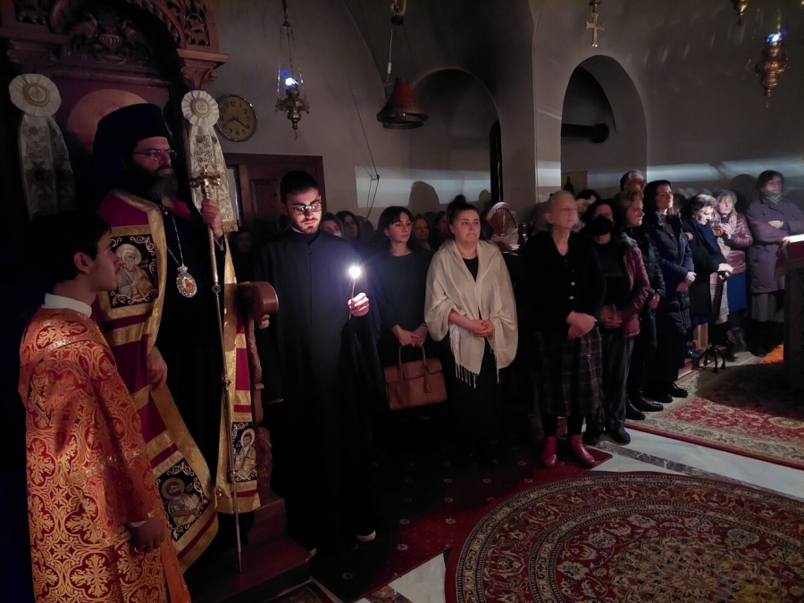 Κατά τήν Ἀκολουθία τοῦ Ἑσπερινοῦ χοροστάτησε ὁ Μητροπολίτης Μαρωνείας κ. Παντελεήμων, ἐνῶ προεξῆρχε καί τῆς Θείας Λειτουργίας.