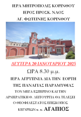 Την Τρίτη, 21 Ιανουαρίου, τιμάται από την Ορθόδοξη Εκκλησία μας η Παναγία η Παραμυθία. Είναι γνωστό ότι στο Ιερό Μητροπολιτικό Παρεκκλήσιο της Αγίας Φωτεινής, εντός του περιβόλου του Επισκοπείου, στην Κόρινθο, βρίσκεται το ακριβές αντίγραφο της θαυματουργού Εικόνος Της, προερχόμενο εκ της Ιεράς Μεγίστης Μονής Βατοπαιδίου, Αγίου Όρους.