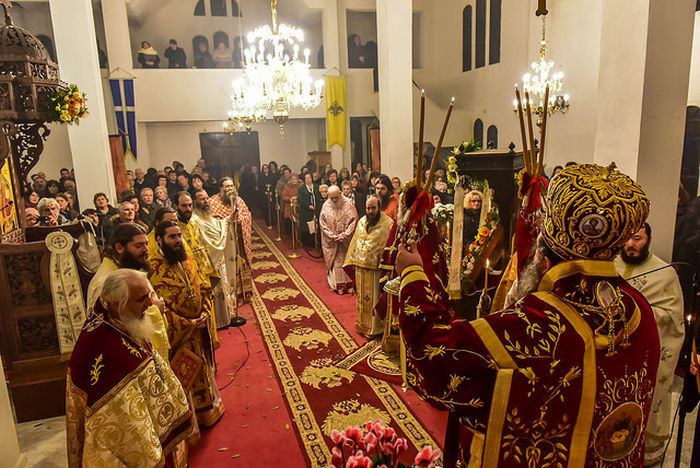 Στην αγρυπνία τον Σεβασμιώτατο και πλαισίωναν ο Καθηγούμενος της Ιεράς Πατριαρχικής και Σταυροπηγιακής Μονής των Ιβήρων Αγίου Όρους, Αρχιμ. Ναθαναήλ Ιβηρίτης, πολλοί Ιερείς και Διάκονοι της καθ΄ ημάς Μητροπόλεως, ενώ εκ του Ιερού Βήματος παρέστη ο Θεοφιλέστατος Επίσκοπος Αμορίου κ.κ. Νικηφόρος.
