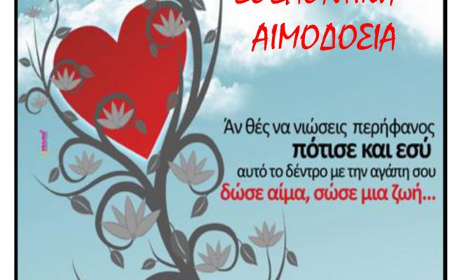 Αιμοδοσία θα διενεργηθεί στον Ι.Ν.Αγίων Κυρίλλου και Μεθοδίου Νεαπόλεως, την Κυριακή 18 Ιουνίου 2023, σύμφωνα με το Πρόγραμμα: