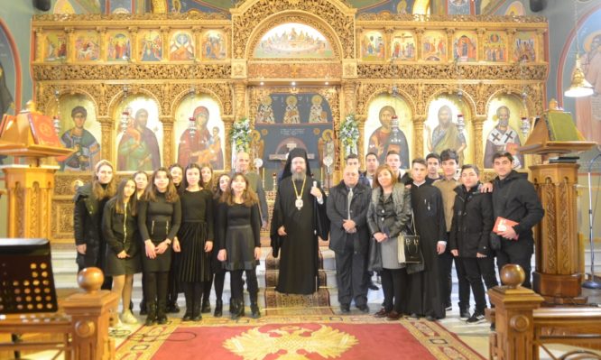 Στην Θεία Λειτουργία έψαλλε κατανυκτικότατα η Βυζαντινή Χορωδία του Μουσικού Σχολείου Αγρινίου, υπό την διεύθυνση του κ. Αριστόβουλου – Δημητρίου Μαστροσπύρου.