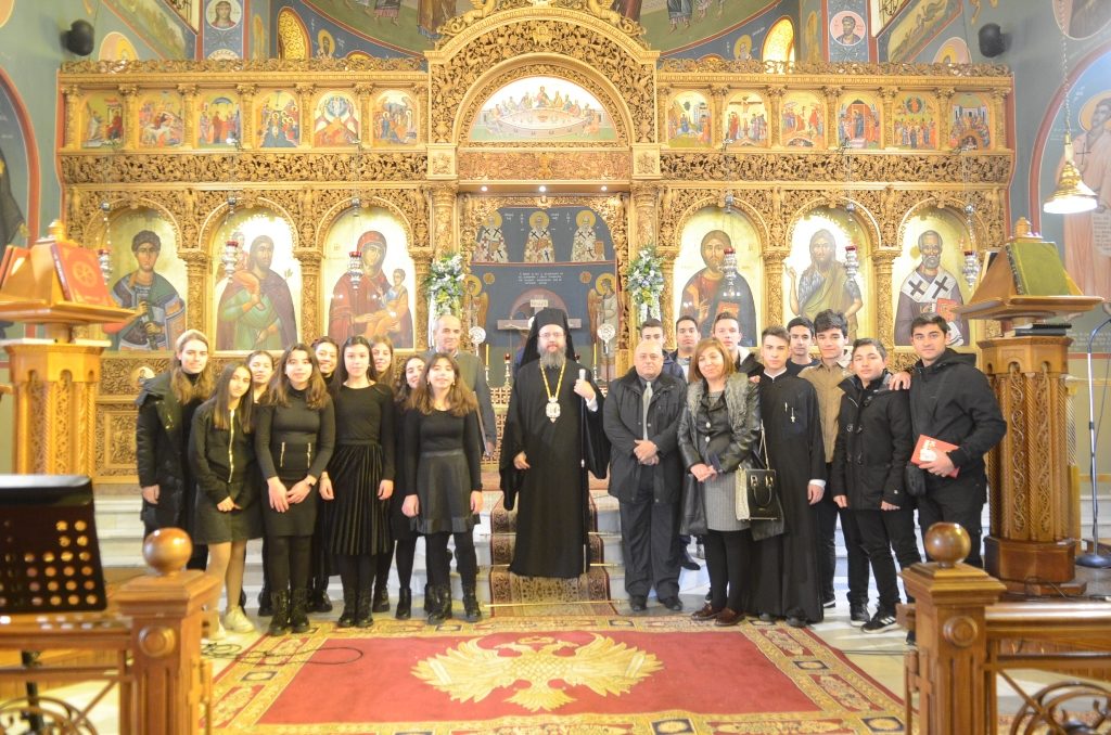 Κατά την απόλυση ο Σεβασμιώτατος ευχαρίστησε και συνεχάρη τα μέλη της χορωδίας και τον Καθηγητή τους, αλλά και την Διευθύντρια, τους Υποδιευθυντές, τους Καθηγητές και όλους τους Μαθητές του Μουσικού Σχολείου Αγρινίου για την σημερινή Θεία Λειτουργία. Εκ μέρους του Σχολείου τον Σεβασμιώτατο ευχαρίστησε ο Καθηγητής κ. Μαστροσπύρος και η Διευθύντρια κ. Ευδοξία Μπεκούλη. Ο Σεβασμιώτατος προσέφερε στο Μουσικό Σχολείο μια εικόνα του Αγίου Καλλινίκου, Επισκόπου Εδέσσης του Αιτωλού και στα μέλη της χορωδίας από μια Καινή Διαθήκη.
