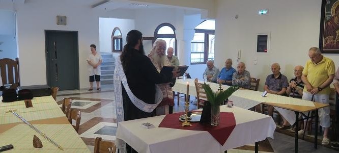 Η Ιερά Παράκληση τελέσθηκε στο σαλόνι του Ιδρύματος και συμμετείχαν ψάλλοντας όλοι οι γέροντες.