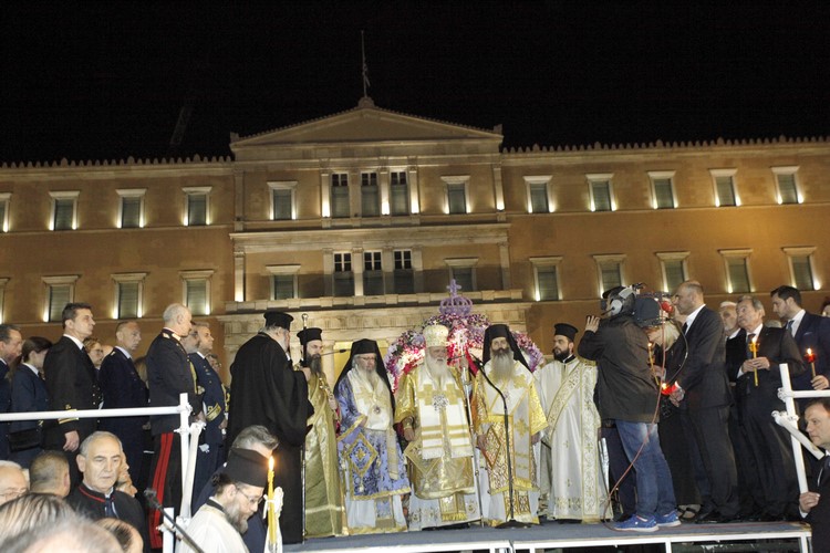 Ο Αρχιεπίσκοπος χοροστάτησε στην ακολουθία του Επιταφίου στον Ιερό Μητροπολιτικό Ναό Αθηνών και συγχοροστάτησαν οι Επίσκοποι Φαναρίου κ. Αγαθάγγελος και Θεσπιών κ. Συμεών. Κατά την περιφορά του Επιταφίου και μετά την δέηση στο μνημείο του Αγνώστου Στρατιώτη ο Αρχιεπίσκοπος επεσήμανε ότι απόψε σκεφτόμαστε αυτά που μας δίδαξε και μας διδάσκει ο Κύριος, ενώ αναφέρθηκε συγκεκριμένα στην επικοινωνία του Κυρίου με τους μαθητές Του, την οποία ο υμνωδός ονομάζει μυσταγωγία. «Ο Κύριος στη μυσταγωγία του τόνισε πως αν θέλετε να είστε φίλοι μου πρέπει να με μιμείστε, σημειώνοντας πως δεν ήρθε σε αυτόν τον κόσμο για να τον υπηρετούν, αλλά για να υπηρετεί» υπογράμμισε ο Αρχιεπίσκοπος και αναφέρθηκε στα προβλήματα της εποχής, ενώ συμπλήρωσε ότι «εκείνοι που θέλουν να κάνουν τους ανθρώπους ίδιους τον έναν με τον άλλο δεν έχουν σχέση με αυτά που μας είπε ο Χριστός» και κάλεσε τους πιστούς να μιμηθούμε τον Κύριο και να υπηρετήσουμε ο ένας τον άλλο. «Καταβάλλονται πολλές προσπάθειες για να αντιμετωπισθούν οι δυσκολίες και τα προβλήματα που αυξάνονται συνεχώς, έρχεται, όμως, απόψε το μήνυμα του Χριστού που είναι ριζοσπαστικό. Σε μία εποχή που ο καθένας από μας, είτε ως πρόσωπο, ως μέλος της κοινωνίας, είτε ως άρχοντας, νομίζει ότι είναι ο ομφαλός της γης, νομίζει ότι όλοι οι άλλοι άνθρωποι πρέπει να τον υπηρετούν, έρχεται το μήνυμα αυτό για να του θυμίσει ότι η πορεία μας στη ζωή δεν είναι να περιμένουμε να μας διακονούν αλλά ο καθένας από μας να κάνει την δική του διακονία. Ας προχωρήσουμε απόψε μέσα σε αυτή την κατανυκτική ατμόσφαιρα, της μυσταγωγίας και ας πάρουμε μαζί μας σαν σύνθημα, ότι δυστυχώς εχθροί του Χριστού υπήρχαν και τότε, υπάρχουν και σήμερα και θα υπάρχουν, αλλά να αγωνιστούμε να γίνουν περισσότεροι οι φίλοι που θα τον μιμηθούν και θα τον αντιγράψουν, σε όλα, αλλά κυρίως στο ότι δεν ήρθε για να τον υπηρετούν, αλλά για να υπηρετεί» είπε χαρακτηριστικά ο Αρχιεπίσκοπος και ευχήθηκε σε όλους χρόνια πολλά και καλή Ανάσταση.