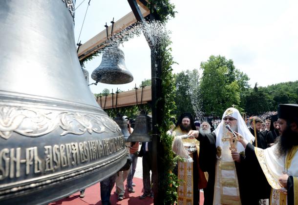 Ρώσοι μοναχοί χτύπησαν πανηγυρικά τις 12 καμπανες που δώρισε στο μοναστήρι η Εκκλησία της Ρωσίας και ευλόγησε ο Πατριάρχης κ. Κύριλλος.