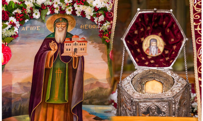 Την Τρίτη 19 Αυγούστου στις 7:00 π.μ. θα τελεστεί Αρχιερατική Θεία Λειτουργία και στις 7:00 μ.μ. θα τελεστεί Μεθέορτος Εσπερινός και Ιερό Ευχέλαιο ενώπιον της Τιμίας Κάρας του Οσίου Θεοφάνους.