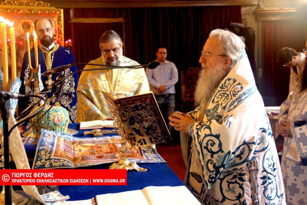 Λίγο πριν προεξήρχε της θείας λειτουργίας με τους νέους συνεργάτες της Μητροπόλεως, τον Γενικό Αρχιερατικό, Αρχιμανδρίτη Ιάκωβο Αθανασίου και Διευθυντή του Γενικού Φιλόπτωχου Ταμείου, Αρχιμανδρίτη Δαμασκηνό Πέτικα και άλλους ιερείς του ναού.