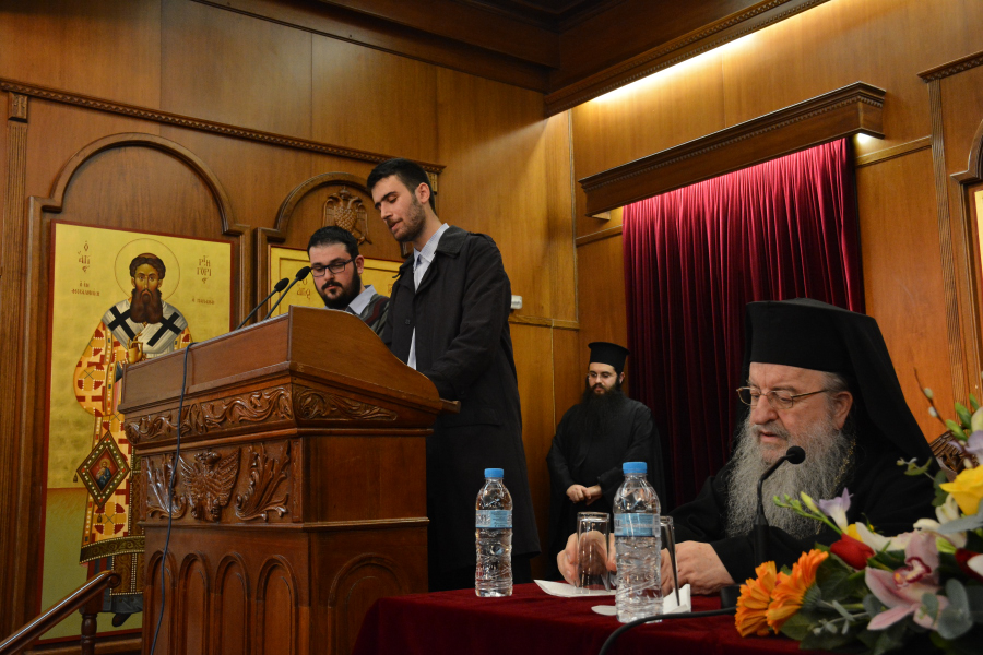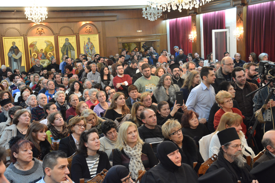Η εκδήλωση πραγματοποιήθηκε εχθές στην Αίθουσα Τελετών της Ιεράς Μητροπόλεως Θεσσαλονίκης, από τον σύλλογο φοιτητών του Αριστοτελείου Πανεπιστημίου Θεσσαλονίκης «Ο ΟΣΙΟΣ ΠΟΡΦΥΡΙΟΣ» σε συνεργασία με την τοπική Ἐκκλησία.