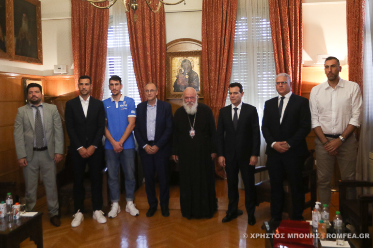 Αντιπροσωπεία της Εθνικής Ομάδας Καλαθοσφαίρισης επισκέφθηκε σήμερα το μεσημέρι τον Αρχιεπίσκοπο Αθηνών και πάσης Ελλάδος κ. Ιερώνυμος.