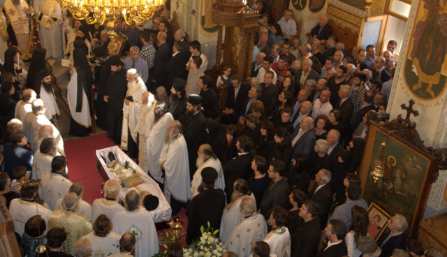 Στην εξόδιο ακολουθία που παρακολούθησαν χιλιάδες κάτοικοι της Πάτρας και των γύρω περιοχών, χθες το μεσημέρι, ο Μητροπολίτης Πατρών κ. Χρυσόστομος διέκοψε αρκετές φορές την επικήδειο ομιλία του η οποία ήταν φορτισμένη από συγκίνηση.