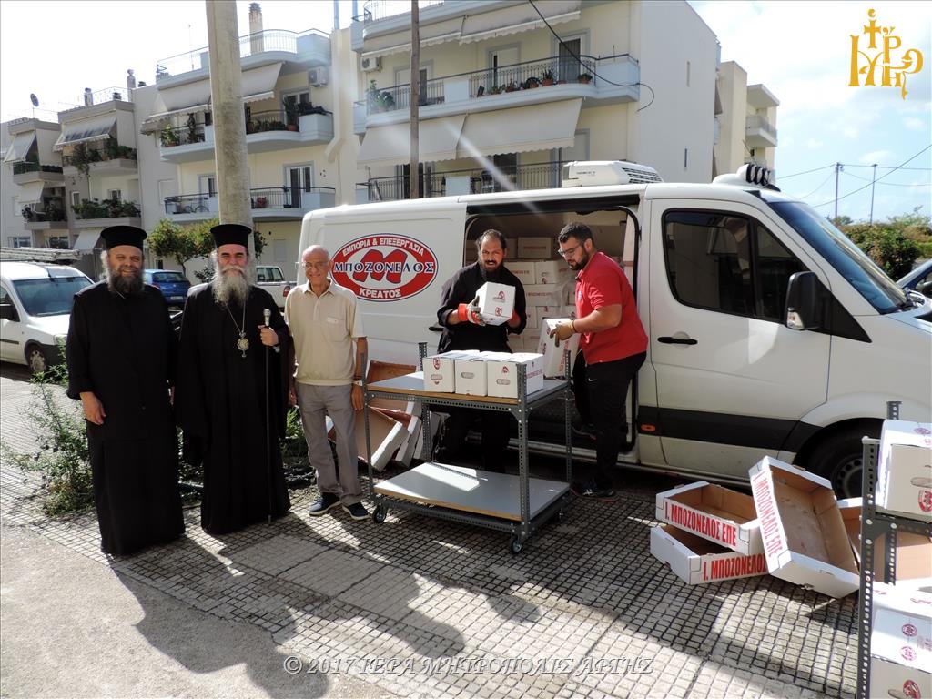 Επίσης, παρελήφθησαν για την Τράπεζα Τροφίμων «ΚΑΤΑΦΥΓΗ» 2 τόνοι τρόφιμα εξ Αργολίδος και συγκεκριμένα από την Εταιρία «Μποζονέλος» και από τον παραγωγό κ. Μπουντούρη. Τα τρόφιμα μετέφεραν ο Πρωτοπρεσβύτερος π. Γεώργιος Μητροσύλης και ο Πρεσβύτερος π. Ιωάννης Μητροσύλης, Κληρικοί της Ιεράς Μητροπόλεως Αργολίδος.