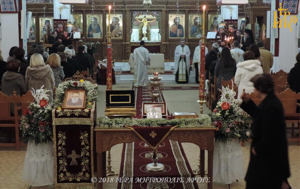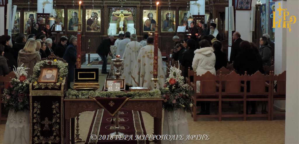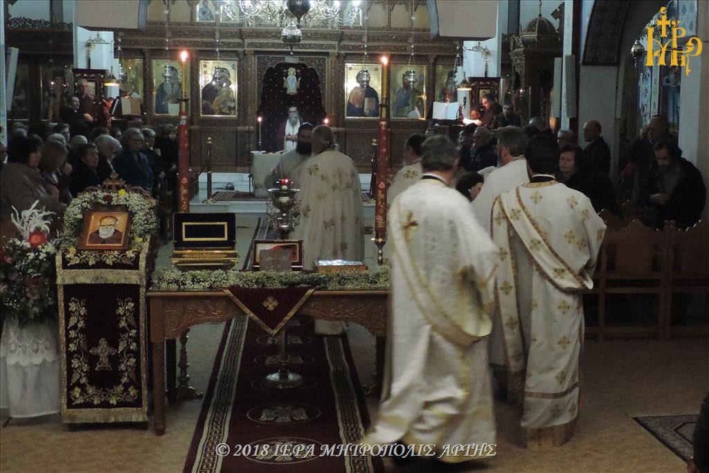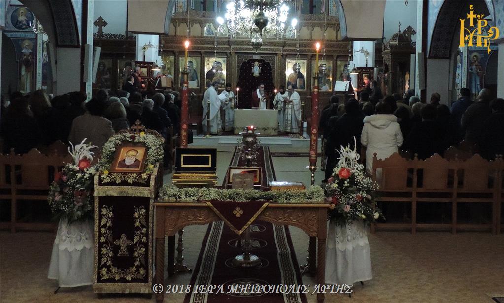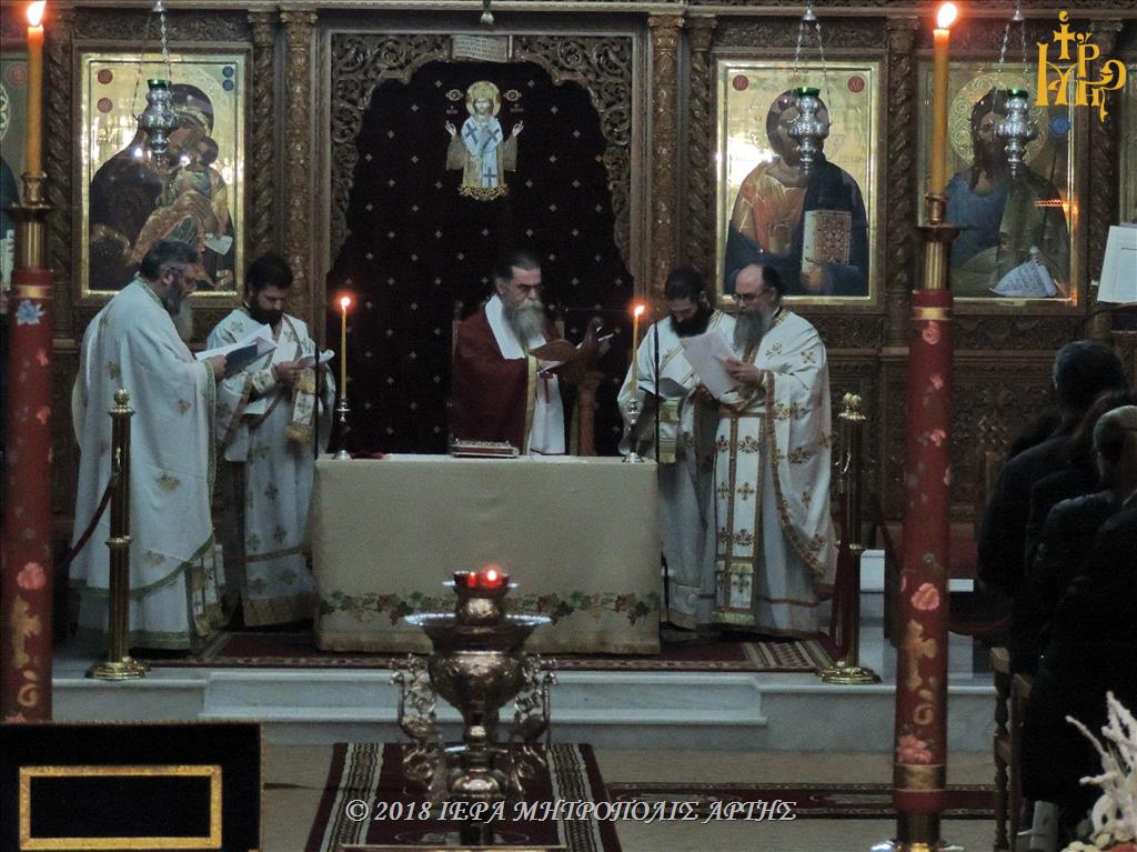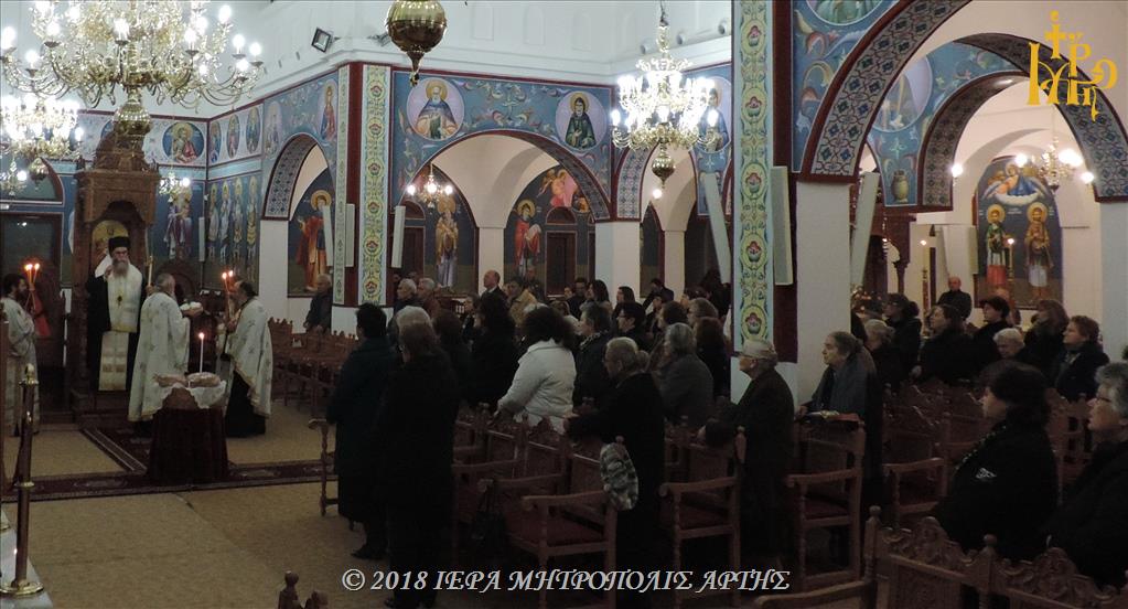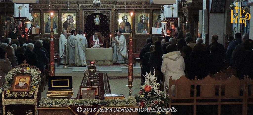 Σε Αγρυπνία που πραγματοποιήθηκε στον Ιερό Ναό του Αγίου Μαξίμου του Γραικού Άρτης, την Τετάρτη προς Πέμπτη (24-25/1/2018), τελέσθηκε από τον επιχώριο Μητροπολίτη κ. Καλλίνκο η Αρχαιοπρεπής Θεία Λειτουργία του Αγίου Γρηγορίου του Θεολόγου.