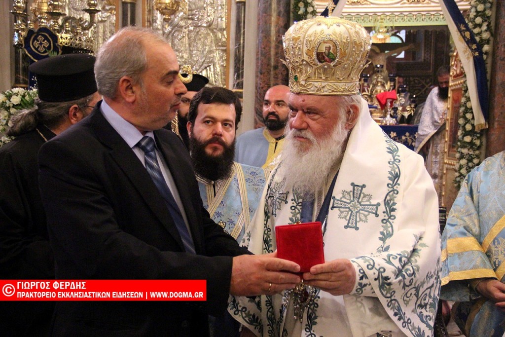 Νωρίτερα προηγήθηκε αρχιερατικό συλλείτουργο (Ρεπορτάζ και Φωτογραφίες) προεξάρχοντος του Αρχιεπισκόπου, με συλλειτουργούς τους μητροπολίτες Χίου κ. Μάρκο, Θηβών κ. Γεώργιο και Ιλίου κ. Αθηναγόρα.