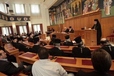 Μετά την ανάγνωση της εκτενούς και εμπεριστατωμένης Εισηγήσεως του Σεβ. Μητροπολίτου Σύρου κ. Δωροθέου, ο Μακαριώτατος αφού τον ευχαρίστησε, είπε μεταξύ των άλλων ότι τα τελευταία σαράντα χρόνια η Εκκλησία, με την βοήθεια του Καταστατικού Χάρτη, πορεύτηκε προς το καλύτερο, αλλά χρέος όλων μας είναι να συνεχίσουμε τις προσπάθειες για βελτίωση σε συνεργασία με την Πολιτεία, ώστε χωρίς εκρήξεις και συγκρούσεις να επιτύχουμε ειλικρινή διάλογο προς επίτευξιν των στόχων μας.