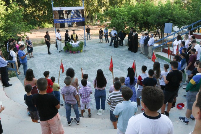 Στην συνέχεια τα παιδιά της κατασκήνωσης τραγούδησαν και είπαν τα συνθήματα που έχει η κάθε ομάδα.