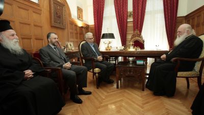Στην συνάντηση παρέστησαν, επίσης, οι Μητροπολίτες Ελασσώνος κ. Χαρίτων, Γρεβενών κ. Δαβίδ και ο Γενικός Γραμματέας Θρησκευμάτων κ. Γεώργιος Καλαντζής.