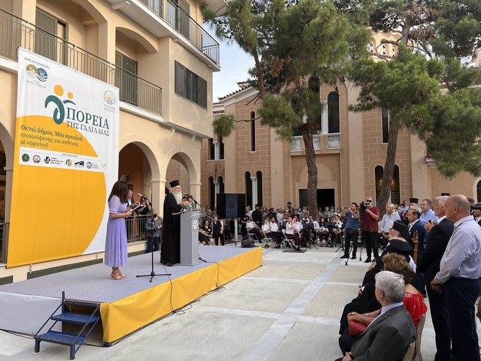 Ο Μητροπολίτης Μεσογαίας καλωσόρισε τους παρευρισκόμενους και αναφέρθηκε στο έργο της «ΓΑΛΙΛΑΙΑΣ», στους σκοπούς και στην ιδέα, καθώς και στην στήριξη της τοπικής κοινωνίας. Η πρότυπη και μοναδική στη χώρα Μονάδα Ανακουφιστικής Φροντίδας «ΓΑΛΙΛΑΙΑ» στηρίζει καρκινοπαθείς και πάσχοντες από τη νόσο του κινητικού νευρώνα, έχει ήδη συμπληρώσει 12 και πλέον χρόνια ζωής. 12 χρόνια προσφέρει φροντίδα κατ’ οίκον, 11 χρόνια λειτουργεί το Κέντρο Ημέρας και εδώ και 4,5 χρόνια διαθέτει και υπερσύγχρονο νοσηλευτικό Ξενώνα. Μίλησε για τους περίπου 6000 δωρητές και υποστηρικτές, για τους εθελοντές και για τις δράσεις. Υπογράμμισε τους στόχους της «Πορείας της Γαλιλαίας» και ευχήθηκε αντίστοιχα κέντρα να δημιουργηθούν και σε άλλες περιοχές.