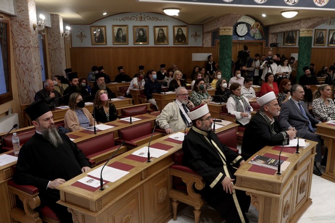 Η εκδήλωση έλαβε χώρα σήμερα το απόγευμα στην αίθουσα συνεδριάσεων της Ιεράς Συνόδου της Ιεραρχίας της Εκκλησίας της Ελλάδος και παρέστησαν αρκετοί Αρχιερείς, Μουφτήδες της Θράκης, ο Περιφερειάρχης Αττικής κ. Γιώργος Πατούλης, ο Γεν. Γραμμ. Θρησκευμάτων κ. Γιώργος Καλαντζής, η Βουλευτής κ. Άννα Καραμανλή, πρόεδρος της Κοινοβουλευτικής Επιτροπής Ισότητας, Νεολαίας και Δικαιωμάτων του Ανθρώπου, κλήρος και λαός. Παράλληλα, η εκδήλωση μεταδόθηκε απευθείας μέσω διαδικτύου.