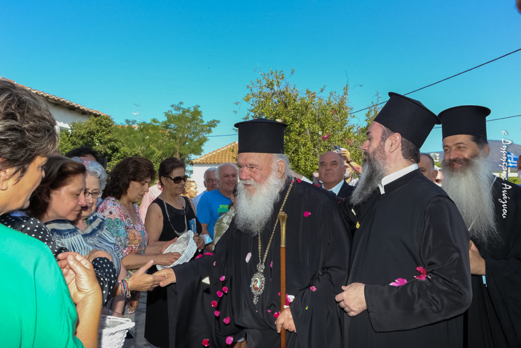 Ο Αρχιεπίσκοπος, αναφερόμενος στις φωτιές που έπληξαν την περιοχή, μεταξύ άλλων, τόνισε: «Η σημερινή ημέρα, είναι μία περίεργη μέρα, μέσα στο πλαίσιο της εκκλησιαστικής διακονίας μας. Περιπίπτουμε από έκπληξη σε έκπληξη και από χαρά σε χαρά. Από το πρωί στην όμορφη αλλά πληγωμένη Εύβοια, είδαμε το περιβάλλον με θλίψη, με έλεγχο αλλά και με ελπίδα και αισιοδοξία. Και τώρα βρισκόμαστε στην απέναντι πλευρά και έχουμε πάλι χαρά και έκπληξη».