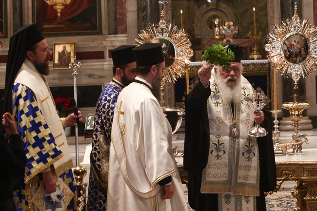 Την Ακολουθία του Μεγάλου Αγιασμού τέλεσε σήμερα, Πέμπτη, 6 Ιανουαρίου 2022, ανήμερα της εορτής των Θεοφανείων, ο Αρχιεπίσκοπος Αθηνών και πάσης Ελλάδος κ. Ιερώνυμος, στον Ι. Μητροπολιτικό Ναό Αθηνών.