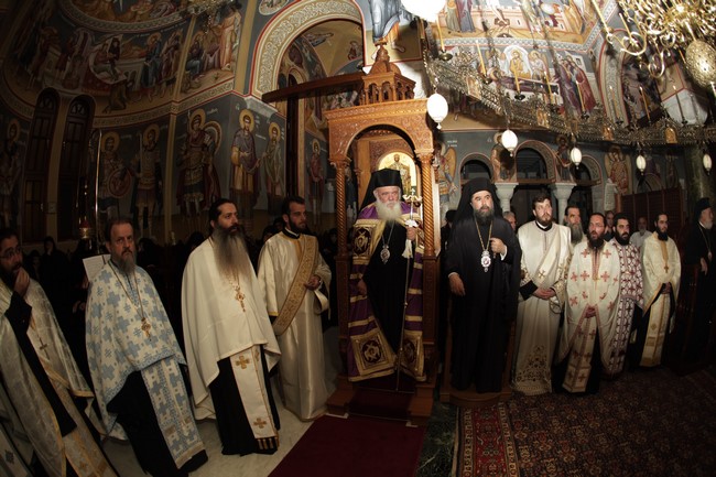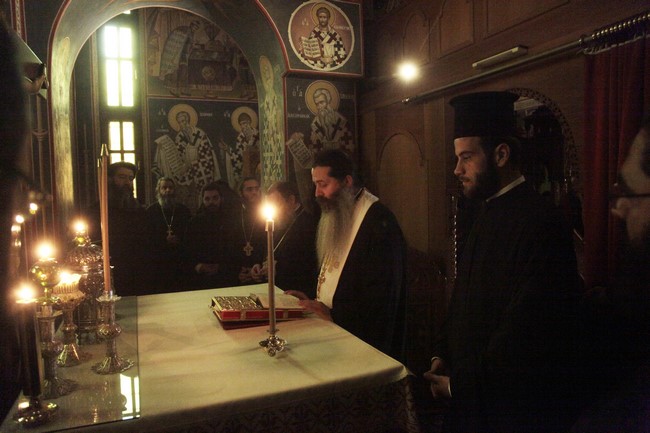 Ο Μητροπολίτης Κασσανδρείας κ. Νικόδημος καλωσόρισε τον Αρχιεπίσκοπο και τους άλλους Αρχιερείς και τους ευχαρίστησε για την παρουσία τους, ενώ απευθυνόμενος προς τον Αρχιεπίσκοπος επεσήμανε: «η Πρωθιεραρχική παρουσία και συμμετοχή Σας, στην Οσιακή Εορτή προσδίδει εξαιρετική λαμπρότητα και εκκλησιαστική μεγαλοπρέπεια και συγχρόνως χαροποιεί τον ευσεβή Ορθόδοξο και φιλακόλουθο λαό του Θεού, ο οποίος τρέφει πολλή αγάπη, βαθύτατο σεβασμό και εμπιστοσύνη στον Αρχιεπίσκοπο του, ο οποίος με σοφία, σύνεση, διάκριση, παρρησία, αποφασιστικότητα και με τις μελετημένες εύστοχες παρεμβάσεις Του, εκεί που πρέπει, αντιμετωπίζει τα πολλά, κρίσιμα και βασανιστικά προβλήματα που αναφύονται καθημερινά στη ζωή της Εκκλησίας, του Έθνους και της κοινωνίας, αντλώντας δύναμη από τον Θείο Δομήτορα της Εκκλησίας και τις ακατάπαυστες πρεσβείες των Αγίων».