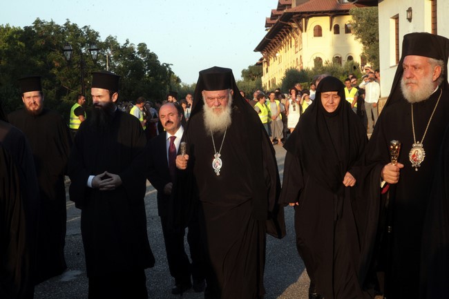 Και προσέθεσε: «Όλοι διερωτώμεθα σήμερα για το που πραγματικά οδηγούμαστε. Φτώχεια, ανασφάλεια, ευτελισμός, αναξιοπρέπεια είναι, δυστυχώς, τα χαρακτηριστικά του σύγχρονου κόσμου. Ολόκληρη η λειτουργία της κοινωνίας μας και των δομών της, η οικογένεια, τα σχολεία, τα πανεπιστήμια, φέρουν τη σφραγίδα της διάλυσης και της παρακμής», είπε χαρακτηριστικά. «Από λόγια έχουμε κουραστεί. Έχει γεμίσει ο κόσμος λόγια. Έχουμε ανάγκη τον Λόγο του Χριστού, αυτόν που βγήκε από τα στόματα των Αγίων, όπως του Αγίου Παϊσίου» τόνισε ο Αρχιεπίσκοπος. «Πρέπει», κατέληξε στην ομιλία του ο Μακαριώτατος, «να μην μας πιάσει πανικός. Να μην είμαστε απαισιόδοξοι. Αυτός ο Θεός που αγάπησε τον κόσμο δεν θα μας αφήσει. Αρκεί εμείς να κάνουμε έστω ένα βήμα προς Αυτόν». Στη συνέχεια τελέσθηκε ιερά αγρυπνία στην ιερά μονή, ενώ πιστοί έφταναν όλη τη νύχτα από κάθε περιοχή της χώρας, για να τιμήσουν τη μνήμη του Αγίου.
