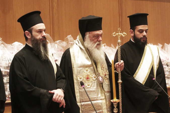 Ο Αρχιεπίσκοπος ευλόγησε την Πρωτοχρονιάτικη Βασιλόπιτα της Ιεράς Συνόδου της Εκκλησίας της Ελλάδος στην μεγάλη αίθουσα συνεδριάσεων της Ιεραρχίας της Εκκλησίας της Ελλάδος.
