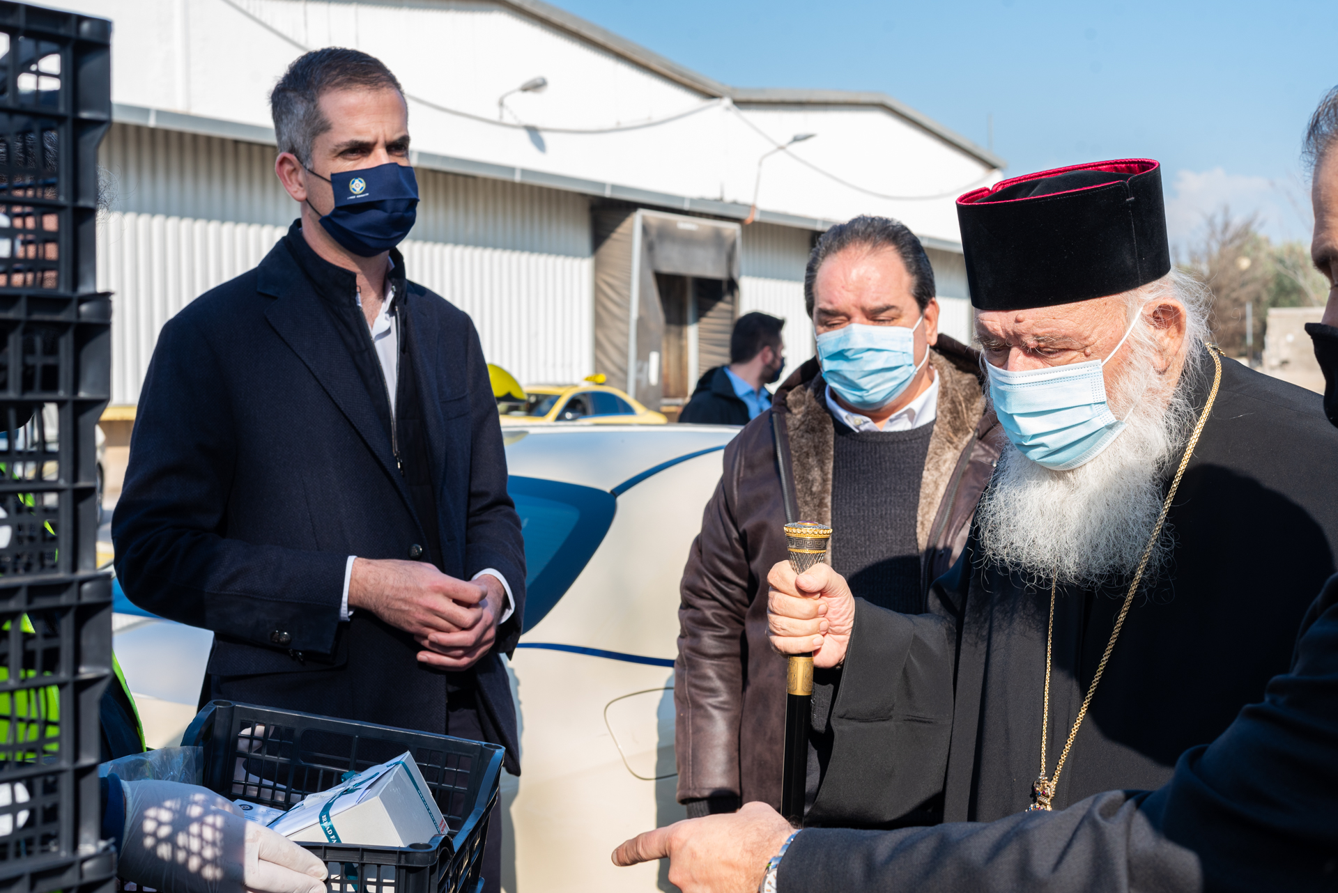 Σήμερα το πρωί ο Δήμαρχος Αθηναίων Κώστας Μπακογιάννης υποδέχθηκε τον Αρχιεπίσκοπο Αθηνών και Πάσης Ελλάδος Ιερώνυμο και τον Γενικό Διευθυντή της «Αποστολής» Κωστή Δήμτσα στον Ελαιώνα. Στο χώρο όπου οι εργαζόμενοι του Δήμου προετοιμάζουν τα χιλιάδες πακέτα τροφίμων που φτάνουν στα σπίτια των συμπολιτών μας οι οποίοι έχουν ανάγκη, σε εκείνους που ανήκουν σε ευάλωτες και ευπαθείς ομάδες.