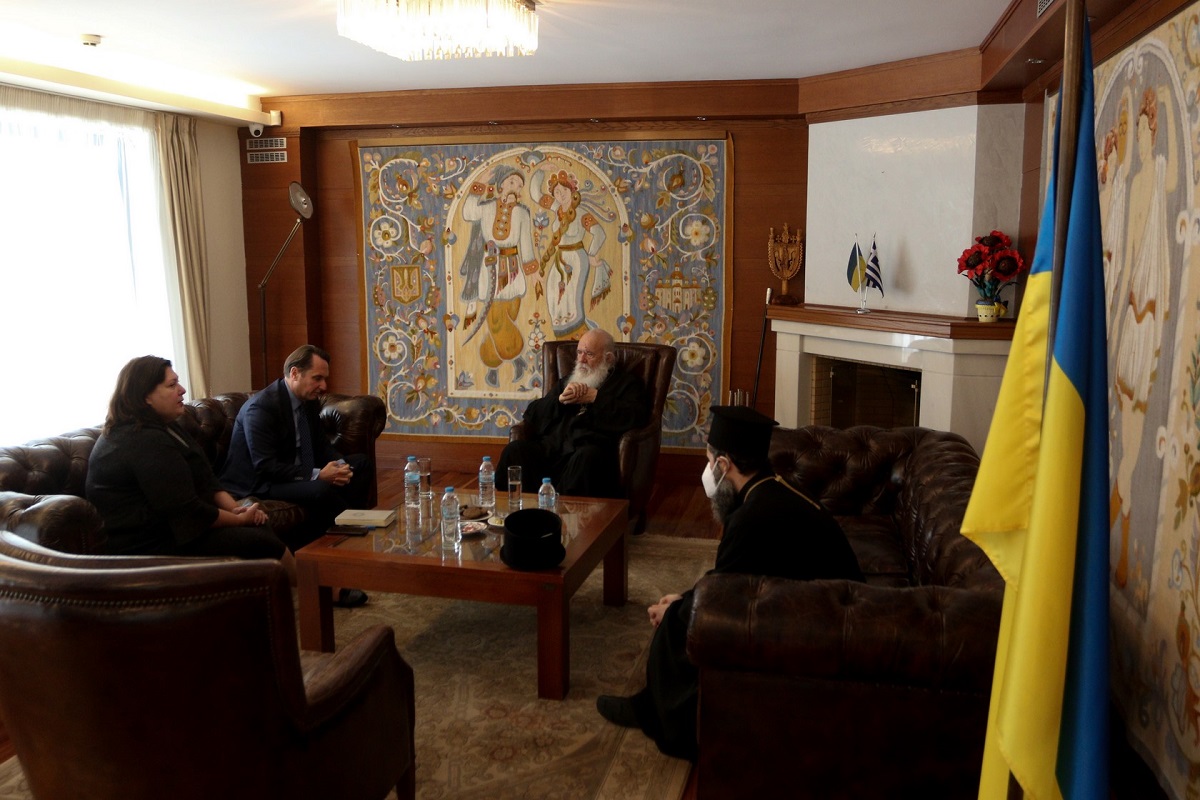Ο Αρχιεπίσκοπος ενδιαφέρθηκε για την κατάσταση στην Ουκρανία και ενημέρωσε τον κ. Πρέσβη για τις δομές και τις εγκαταστάσεις που μπορεί να διαθέσει η Εκκλησία, για να φιλοξενήσει τους Ουκρανούς πρόσφυγες και κυρίως τα ανήλικα παιδιά.