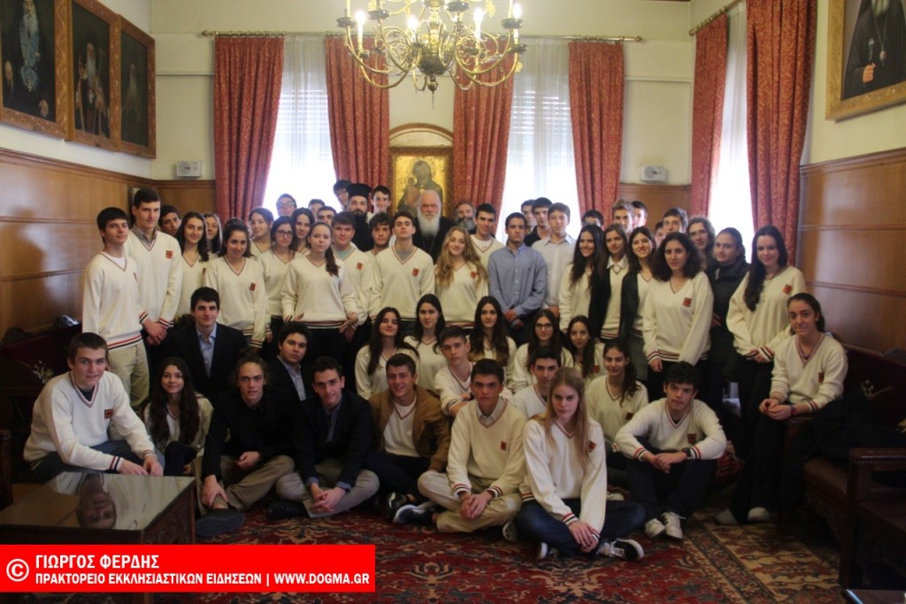 «Σας καλωσορίζω στο σπίτι σας» είπε ο Αρχιεπίσκοπος κ. Ιερώνυμος σε μαθητές των Λυκείων του Κολεγίου Ψυχικού που τον επισκέφθηκαν σήμερα στο γραφείο του.