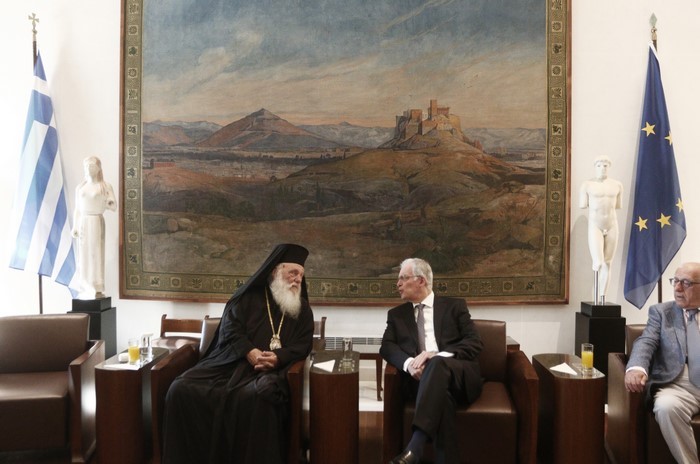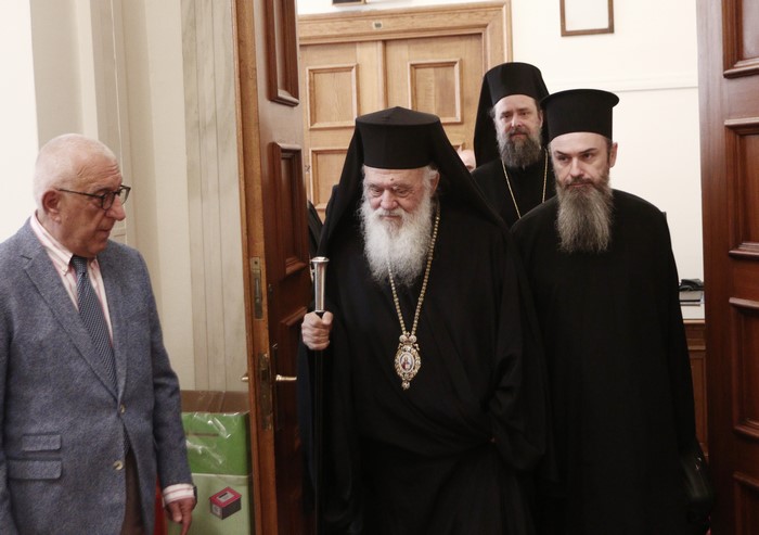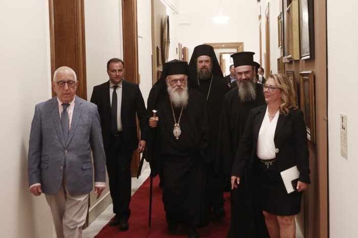 Της σημερινής συνεδρίασης προήδρευσε ο επανεκλεγείς βουλευτής Α’ Αθηνών και α’ αντιπρόεδρος της προηγούμενης Βουλής, Νικήτας Κακλαμάνης, ο οποίος υποδέχτηκε τον Αρχιεπίσκοπο και την συνοδεία του και τους συνόδευσε στο γραφείο του Προέδρου κ. Κωνσταντίνου Τασούλα, όπου είχαν μία σύντομη συζήτηση και στην συνέχεια στην αίθουσα συνεδριάσεων της Βουλής για την τελετή ορκωμοσίας.