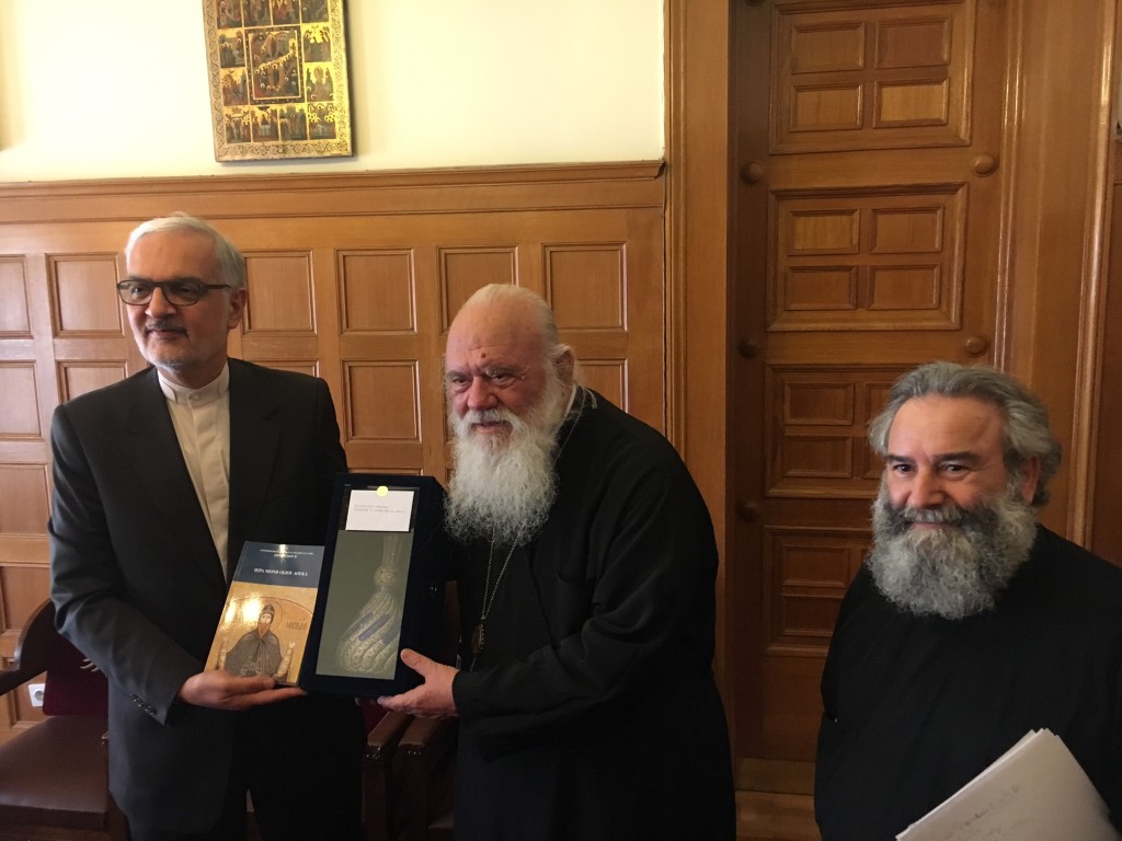 Ο κ. Πρέσβης πραγματοποίησε εθιμοτυπική επίσκεψη στον Αρχιεπίσκοπο, ενώ στο πλαίσιο της συνάντησης αναφέρθηκαν και στα τρομοκρατικά χτυπήματα στην Αίγυπτο. «Καταδικάζουμε κάθε βία και προσβολή προς τα θρησκευτικά κέντρα και τους πιστούς και η ισλαμική Δημοκρατία του Ιράν έχει καταδικάσει απερίφραστα την εγκληματική πράξη στην Αίγυπτο» τόνισε ο κ. Μαζίντ Μοταλεμπί Σαμπεσταρί εκφράζοντας την ελπίδα πως «με την συνεργασία θα φτάσουμε να μην παρατηρούμε τέτοιες πράξεις». Ευχήθηκε, επίσης, υγεία και πρόοδο στον ελληνικό λαό και αναφέρθηκε στον σημαντικό ρόλο της θρησκείας στην κοινωνία. «Με την δική σας καθοδήγηση, Μακαριώτατε, ο ελληνικός λαός θα προοδεύσει περισσότερο» υπογράμμισε ο κ. Πρέσβης. Ο Αρχιεπίσκοπος ευχαρίστησε τον κ. Σαμπεσταρί για την επίσκεψη και αναφέρθηκε στην στενή συνεργασία των δύο χωρών. Με αφορμή τα γεγονότα στην Αίγυπτο ο Αρχιεπίσκοπος τόνισε πως «η θρησκεία ενώνει τους ανθρώπους. Τα τραγικά γεγονότα στην Αίγυπτο οφείλονται στον φανατισμό και στην κακία των ανθρώπων. Έχουμε υποχρέωση εμείς να ενώνουμε τα διεστώτα με τον καλύτερο τρόπο».