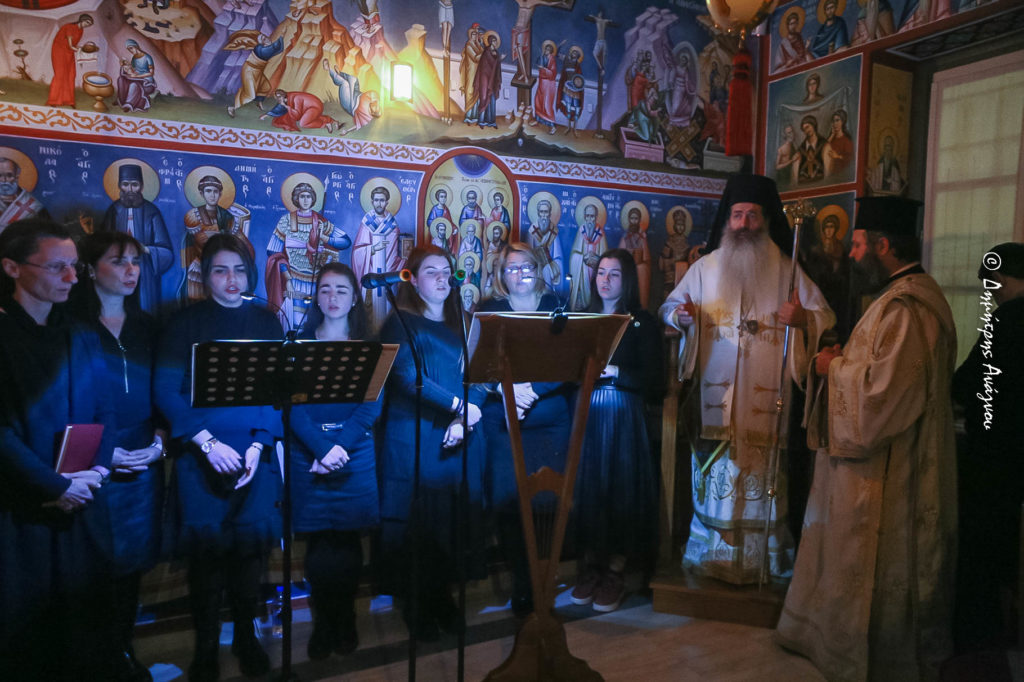 Στην Ιερά Αγρυπνία, έψαλλαν μέλη του Γυναικείου Χορού του Ωδείου της Ιεράς Μητροπόλεως «Γερμανός ο Μελωδός» υπό την καθοδήγηση του Διευθυντού Δρ. κ. Ανδρέου Ιωακείμ, αποδίδοντας μελίρρυτα και αγγελικά τους θαυμάσιους ύμνους της εορτής.