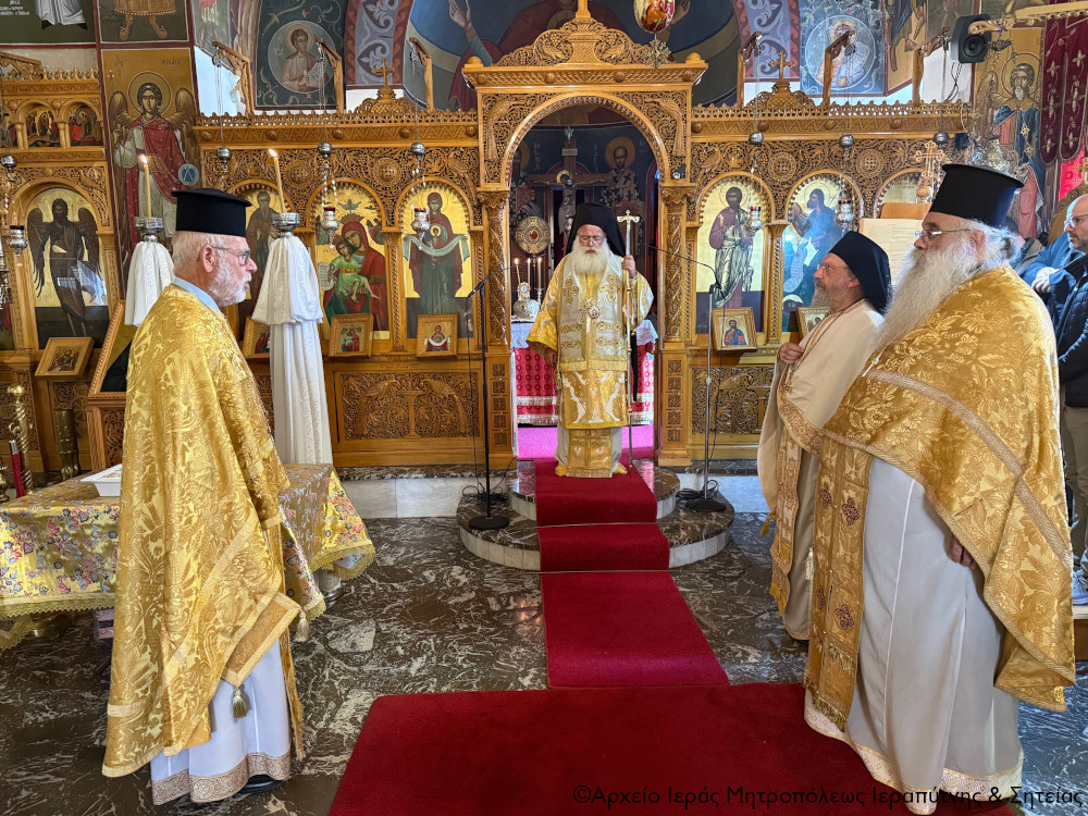 Στην Αρχιερατική θεία Λειτουργία έλαβαν μέρος ο Πανοσιολ. Αρχιμ. Αμβρόσιος Σκαρβέλης, Πρωτοσύγκελλος της Ι. Μητροπόλεως, ο Πανοσιολ. Αρχιμ. Φιλήμων Μπέτσος, ο Αιδεσιμ. πρωτ. Μιχαήλ Ξυδιανός, συνταξιούχος Εφημέριος, ο Αιδεσιμ. πρωτ. Σάββας Λιναρδάκης, Εφημέριος και προϊστάμενος της Ενορίας.